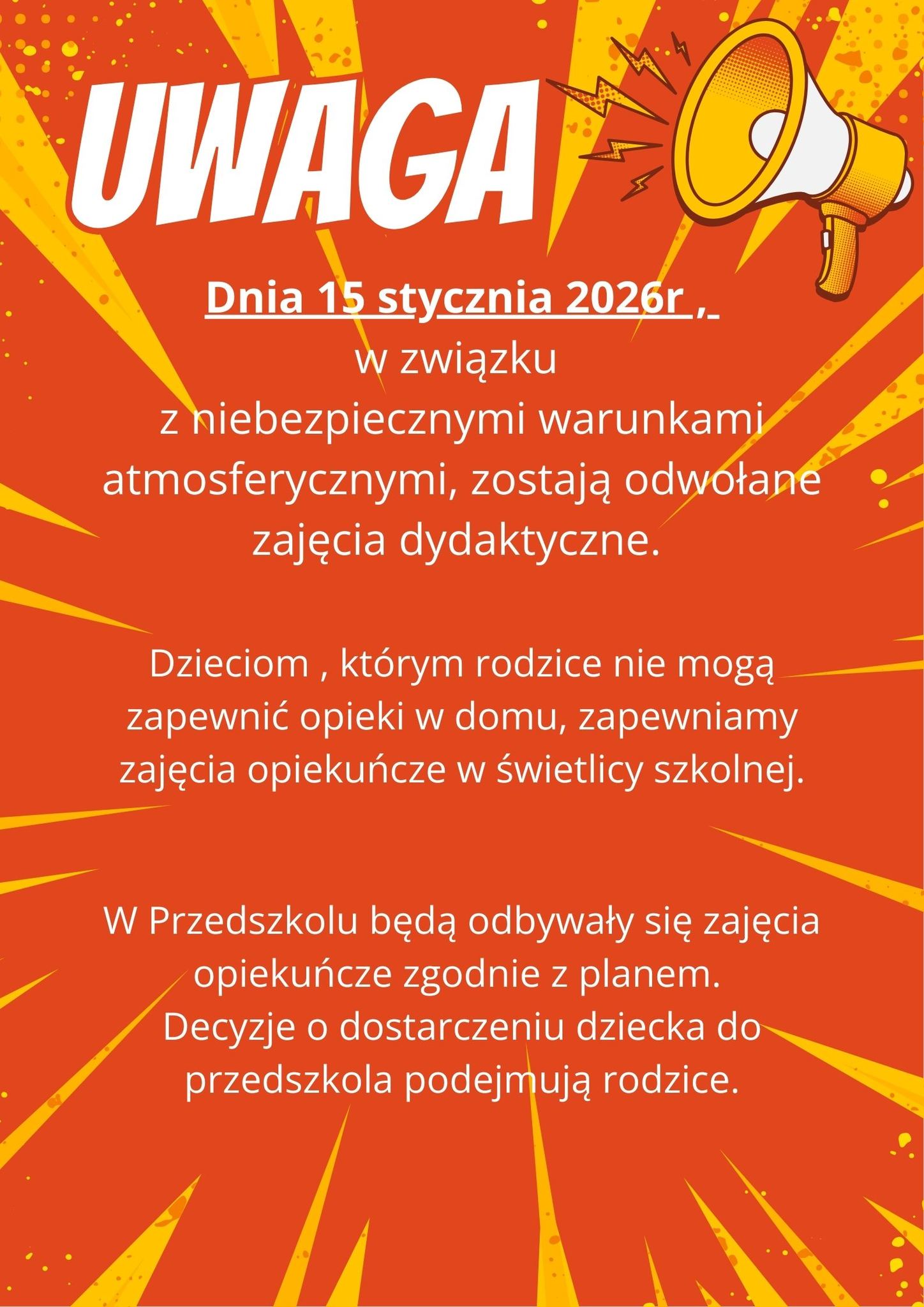 15.01.2026 - ZAJĘCIA ODWOŁANE!